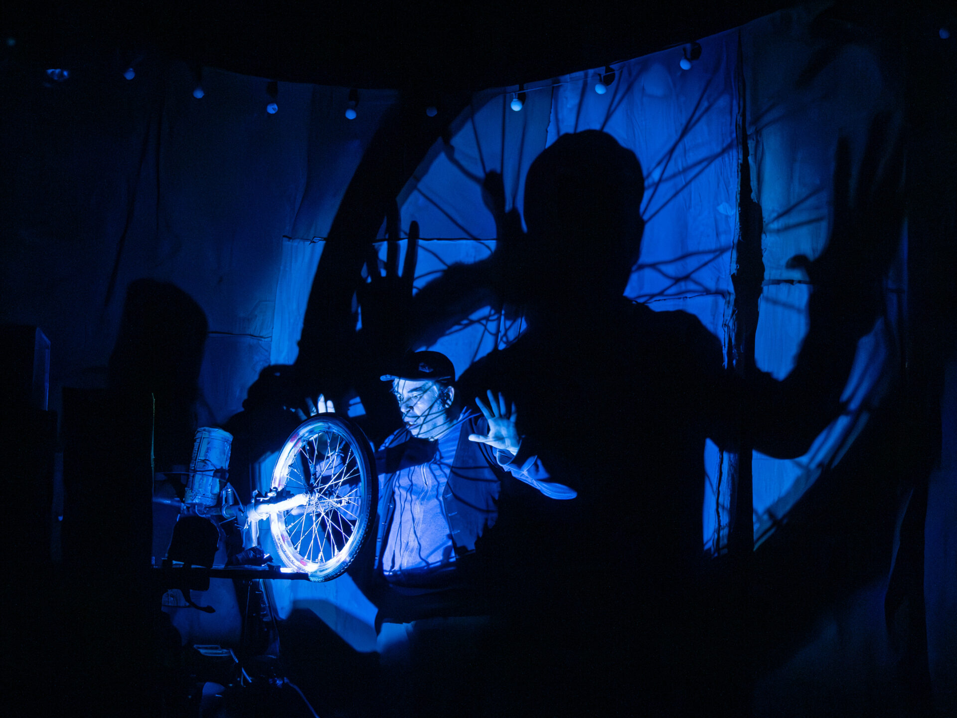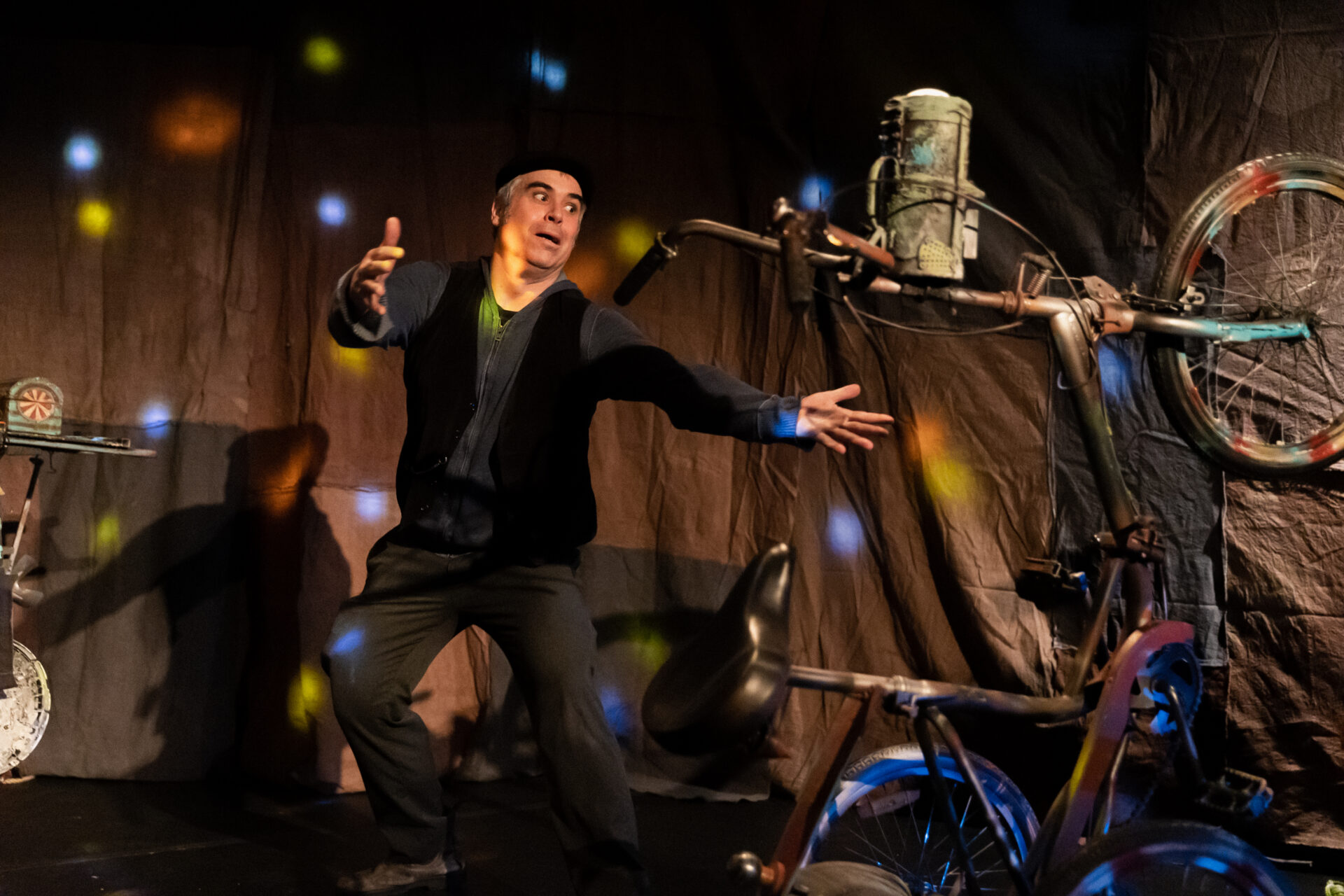 Tricyckle is a spectacle of metamorphosis and transformation using objects and puppetry. Visual theatre without words, the show was conceived to be performed in theatres and also unusual nonconventional spaces.