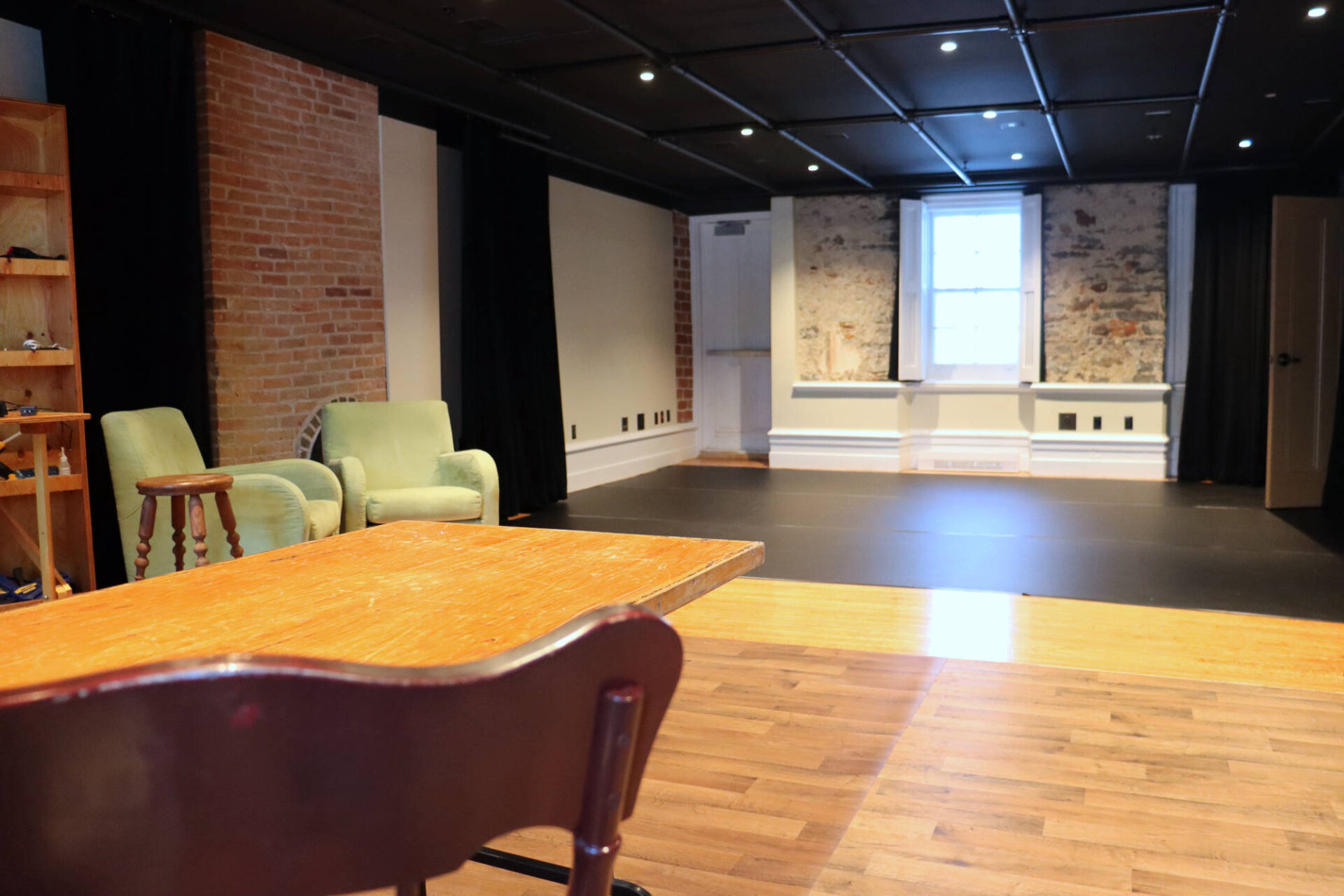 - Espace scénique : 18’-7’’ x 21’ [5.66 m x 6.40 m]