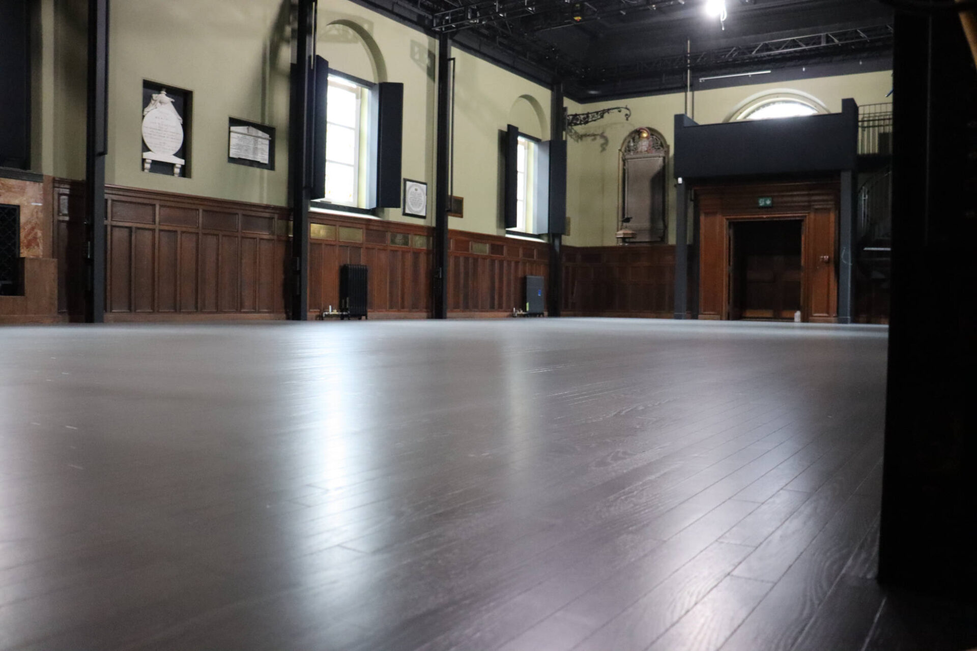 Ancien grand salon du couvent des Récollets, cette salle inspirante et polyvalente sert autant d’espace de création, de répétition que de représentation publique.
