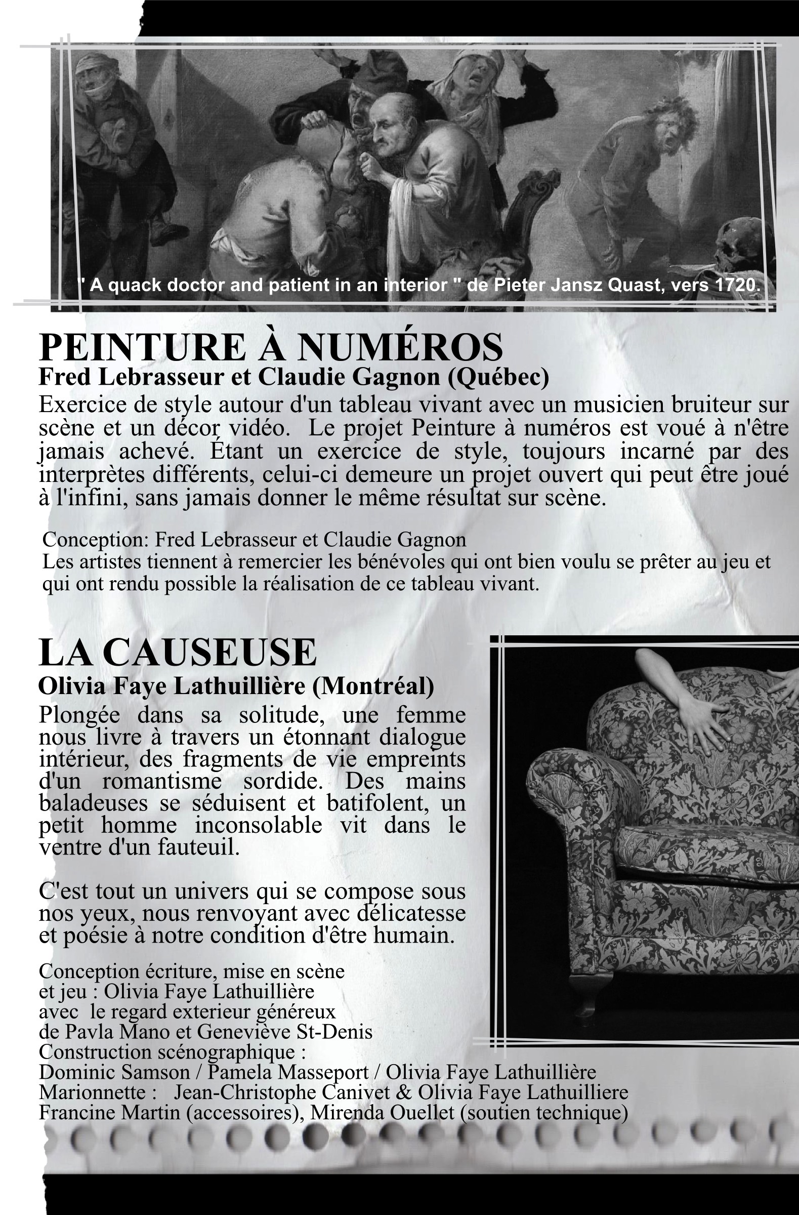 Cet événement atypique réunira des artistes de différentes générations : des compagnies d’expérience, certaines ayant une réputation internationale, et des compagnies de la relève partageront la scène et s’accompagneront mutuellement dans leur étape de création.