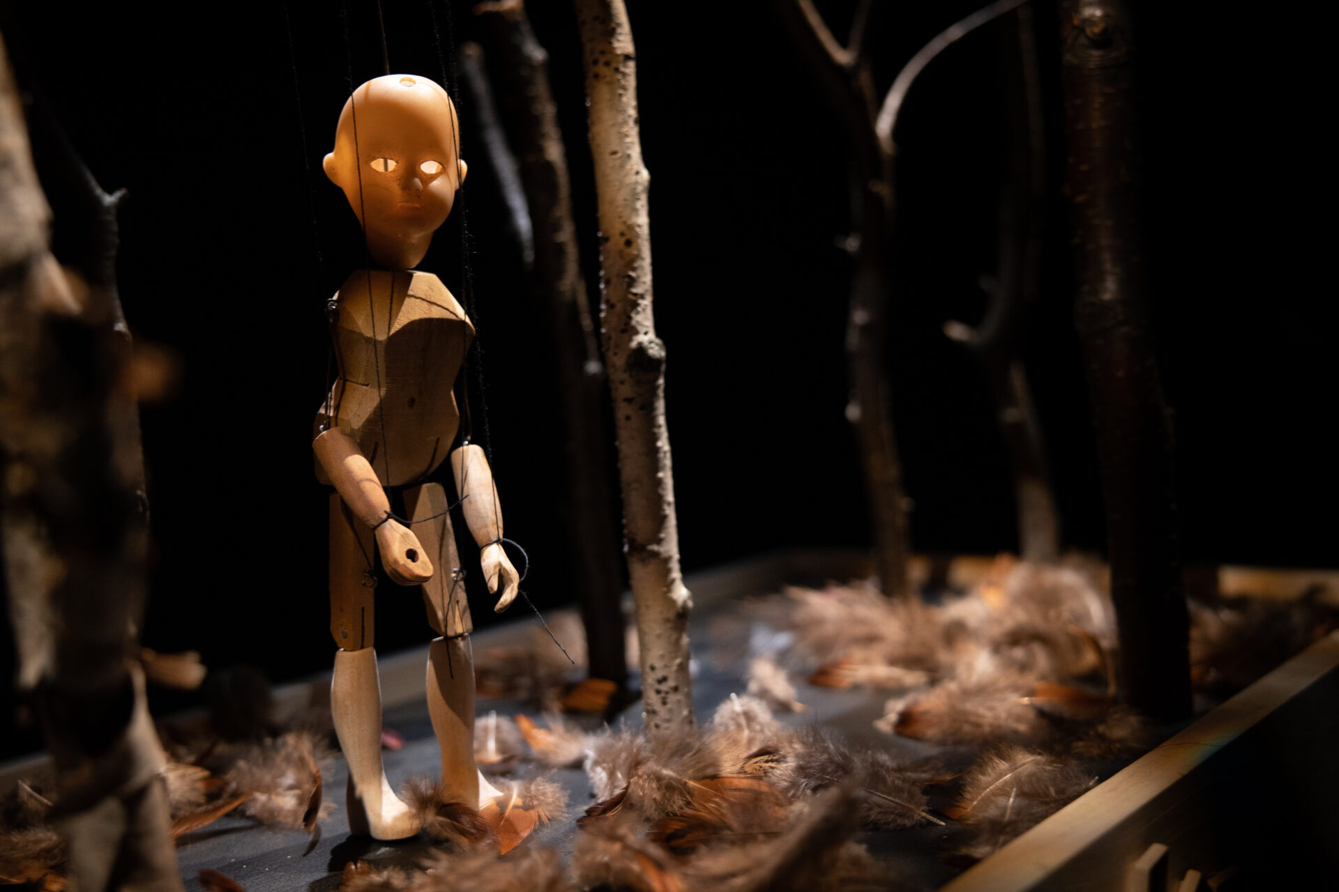 Avec « Réminiscence », Sophie Deslauriers questionne le rapport à la performance dans le théâtre de marionnettes. Curieuse d’explorer différentes possibilités de représentations et d’interactions avec le public, elle crée une installation performative composée de tableaux animés. Dans un univers mystérieux et onirique, elle vous invite à découvrir un théâtre miniature inspiré par les paysages nordiques de la forêt dans lesquelles évoluent les personnages sortis tout droit d’un conte. Elle nous parle de l’enfance, de la mort, du deuil, et de la résilience, à travers une narration visuelle épurée. On assiste alors à un spectacle tout en finesse sur la métamorphose, le passage de l’enfance à la vie adulte, la fragilité de la vie.